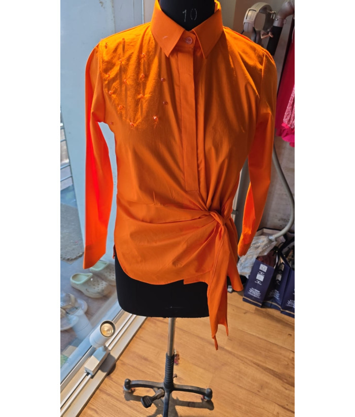 Solid colour shirt with self colour crystal detailing with one side knot